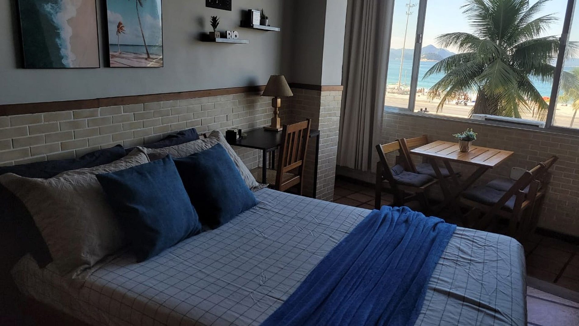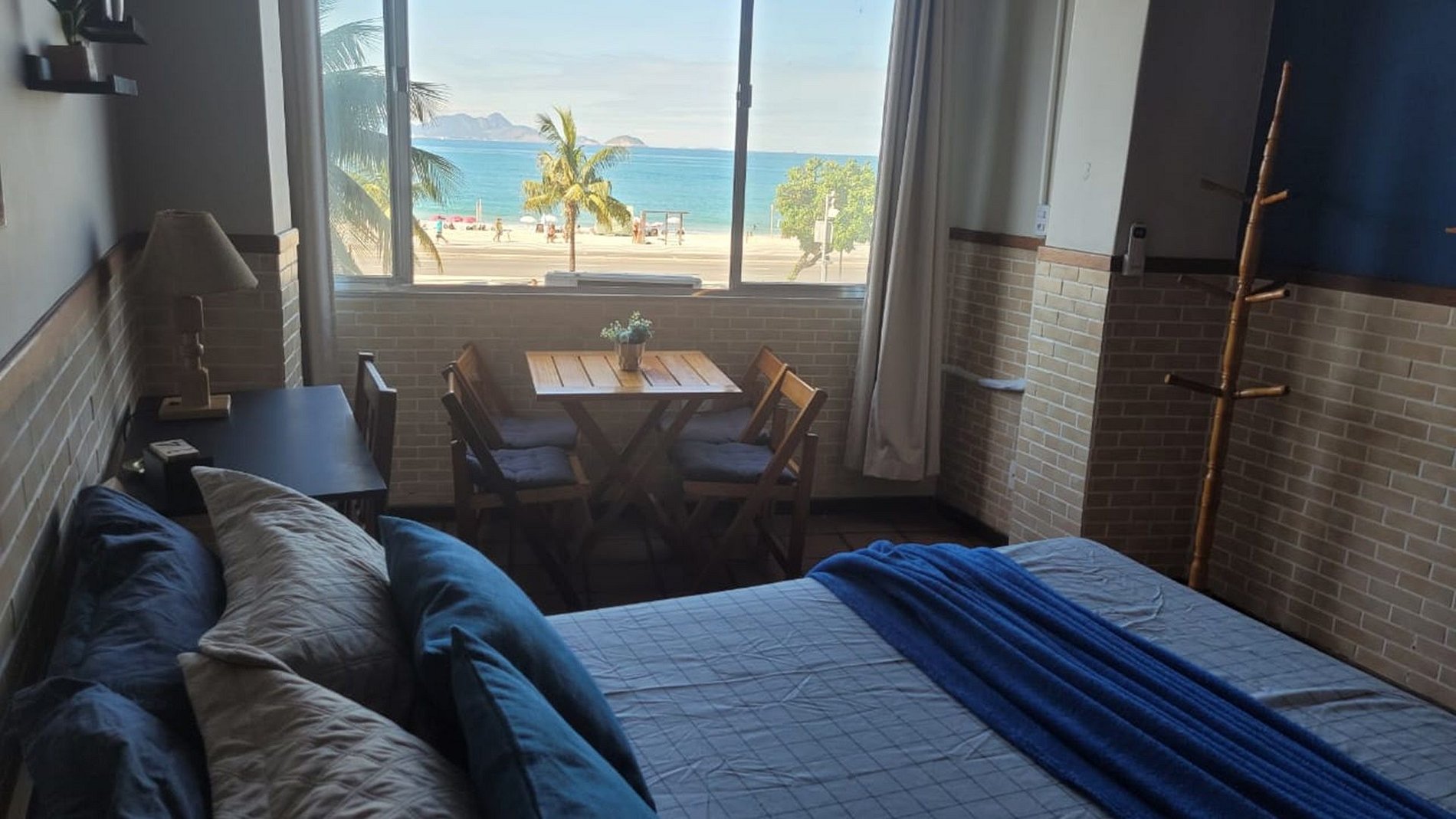 O Atlântica Estudio é um apartamento com cerca de 30m², que acomoda até 5 pessoas, e possui uma vista panorâmica de toda a orla da praia de Copacabana. O endereço do prédio é Av. Atlântica 3806, próximo ao Posto 6, na divisa entre Copacabana e Ipanema. Se hospedando em nosso apartamento, você terá a oportunidade de ver o nascer do sol da janela do apartamento e caminhar por cerca de 15min até o Arpoador e ver o por do sol mais bonito da cidade.