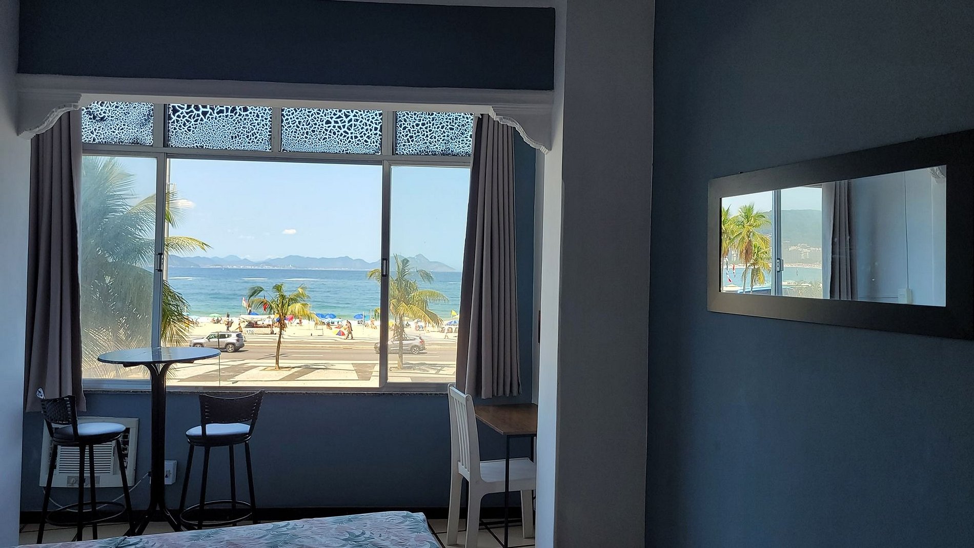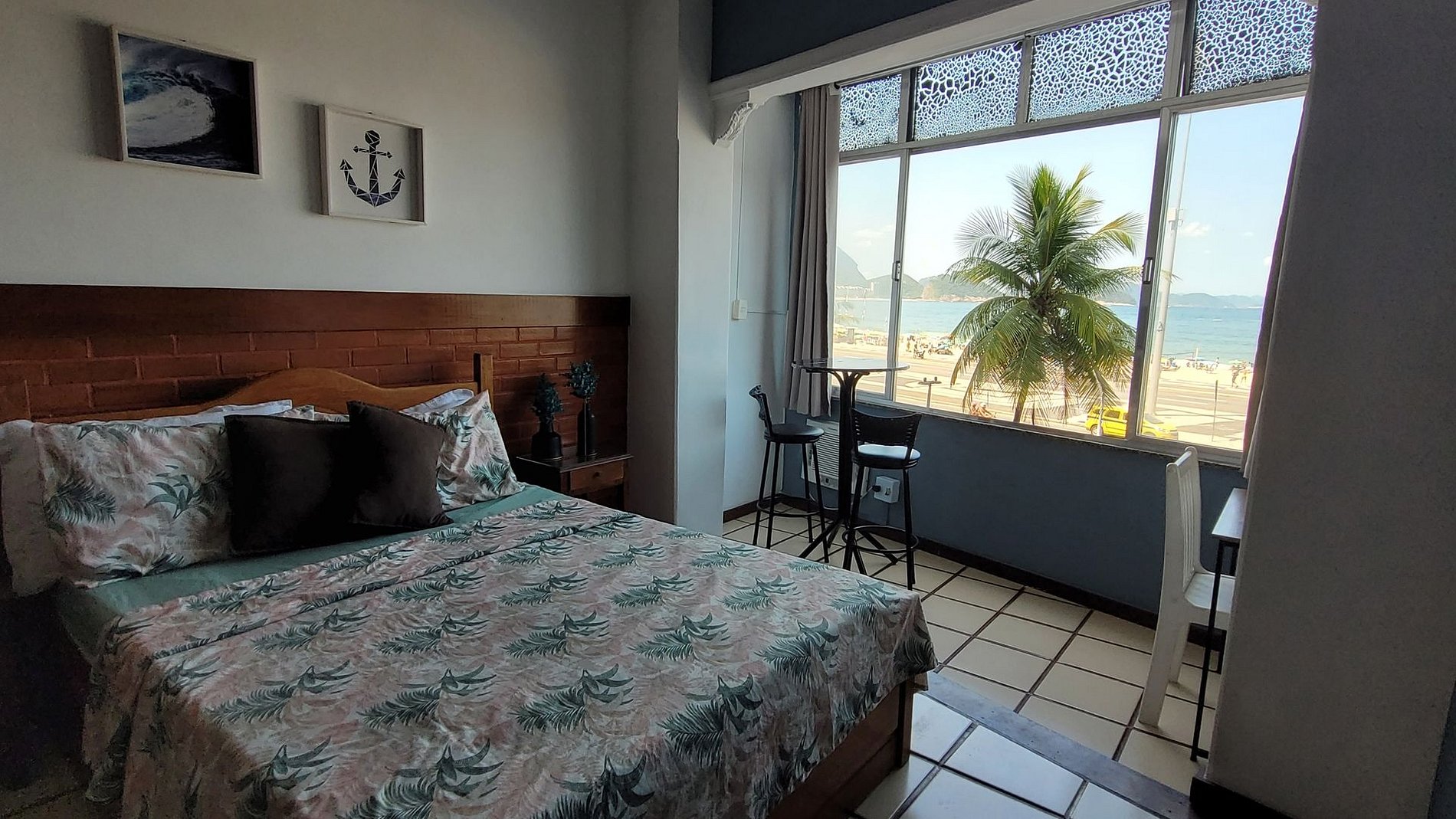 O Copa Dream possui cerca de 30m², acomoda até 5 pessoas, e possui uma vista panorâmica de toda a orla da praia de Copacabana.
