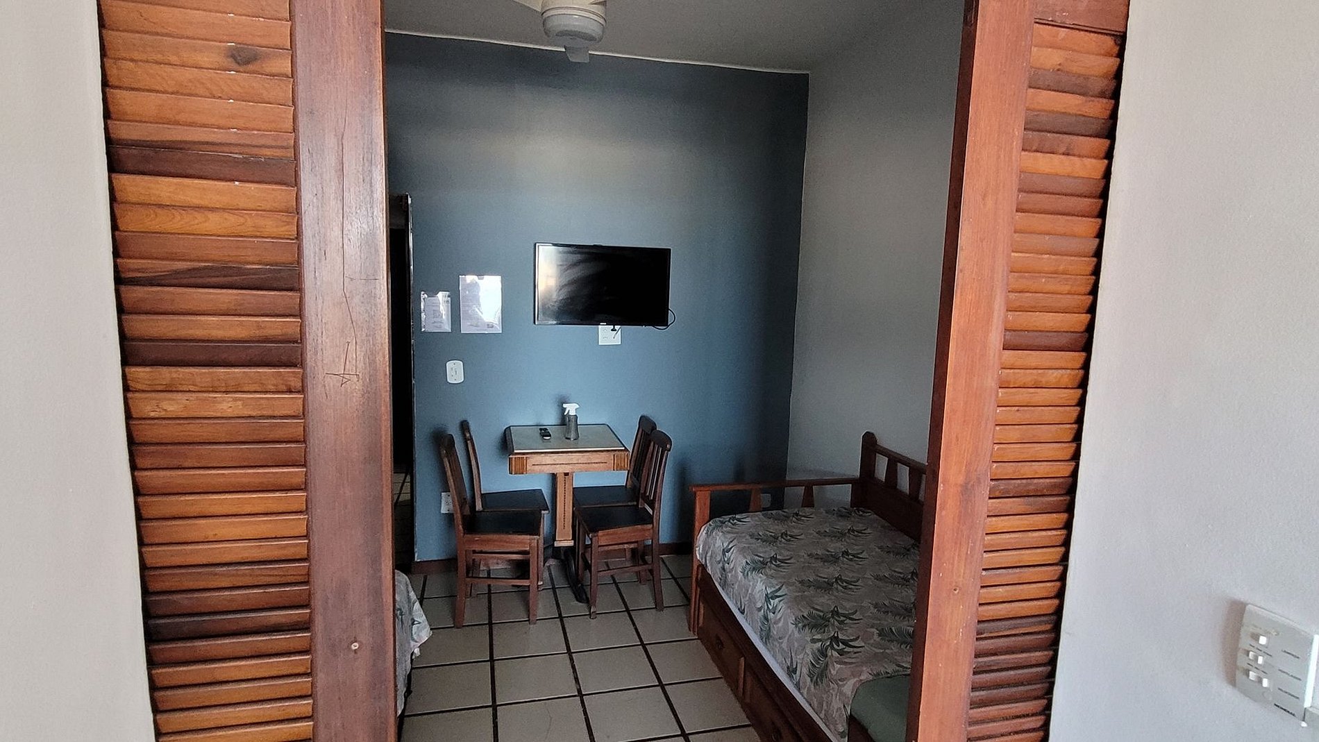 Já para refrigeração, o apartamento tem ar condicionado no quarto e ventiladores de teto no quarto e na sala.
