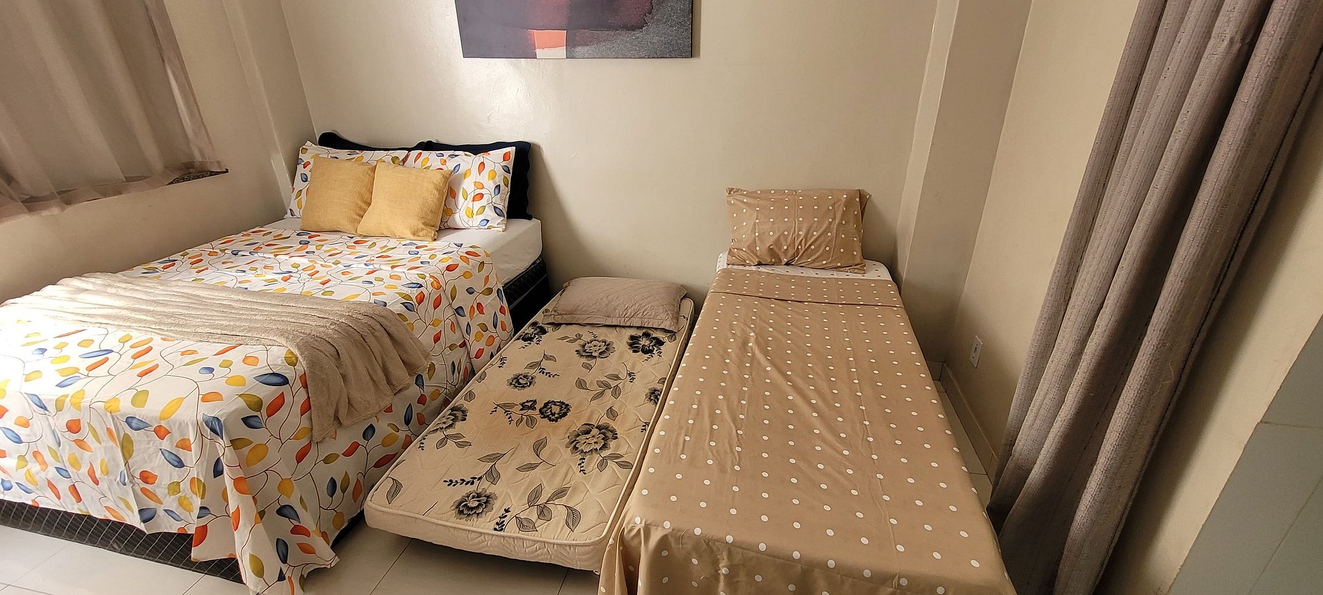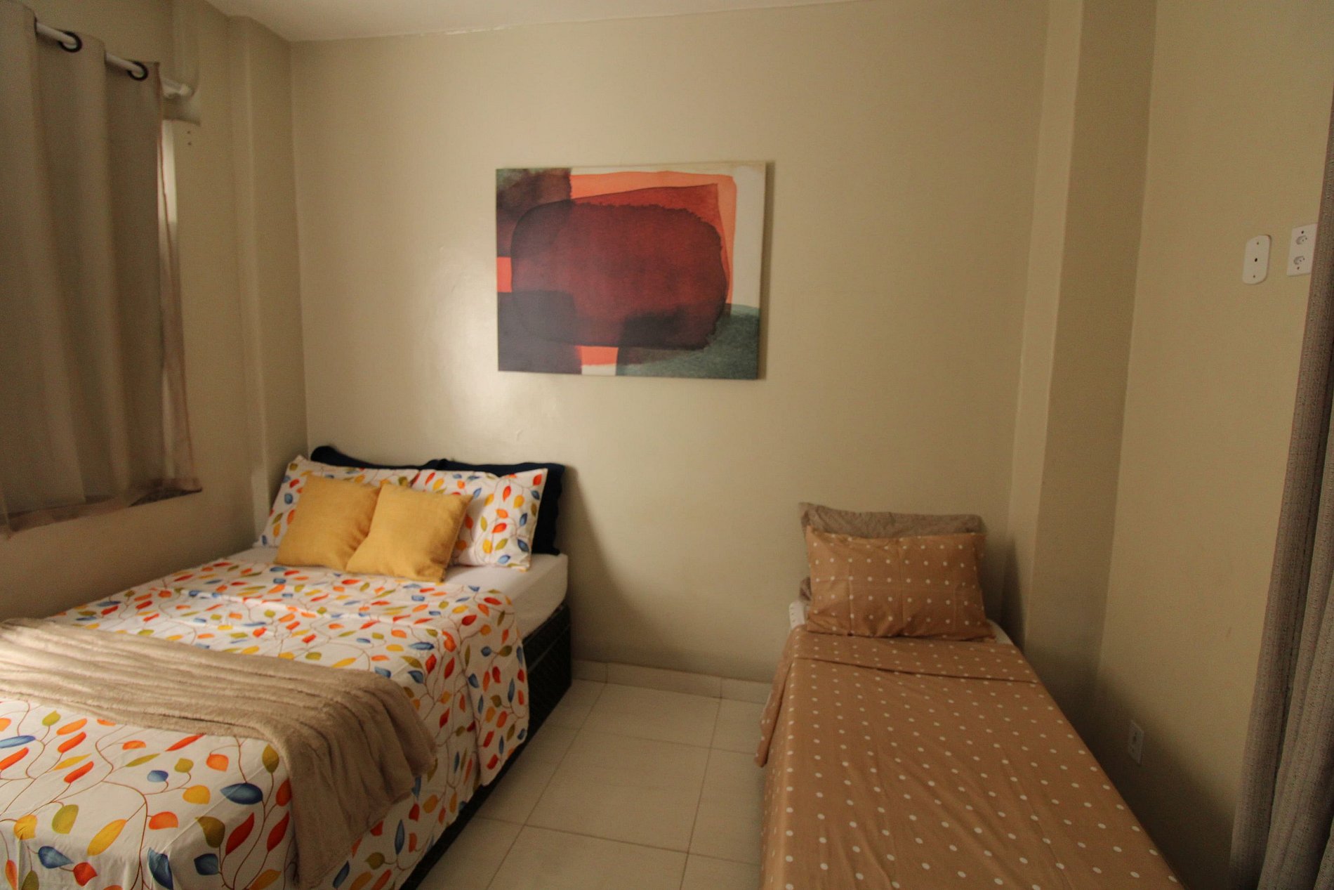 Para acomodar todos os hóspedes, tem 1 cama de casal e 1 cama de solteiro com cama auxiliar no quarto.