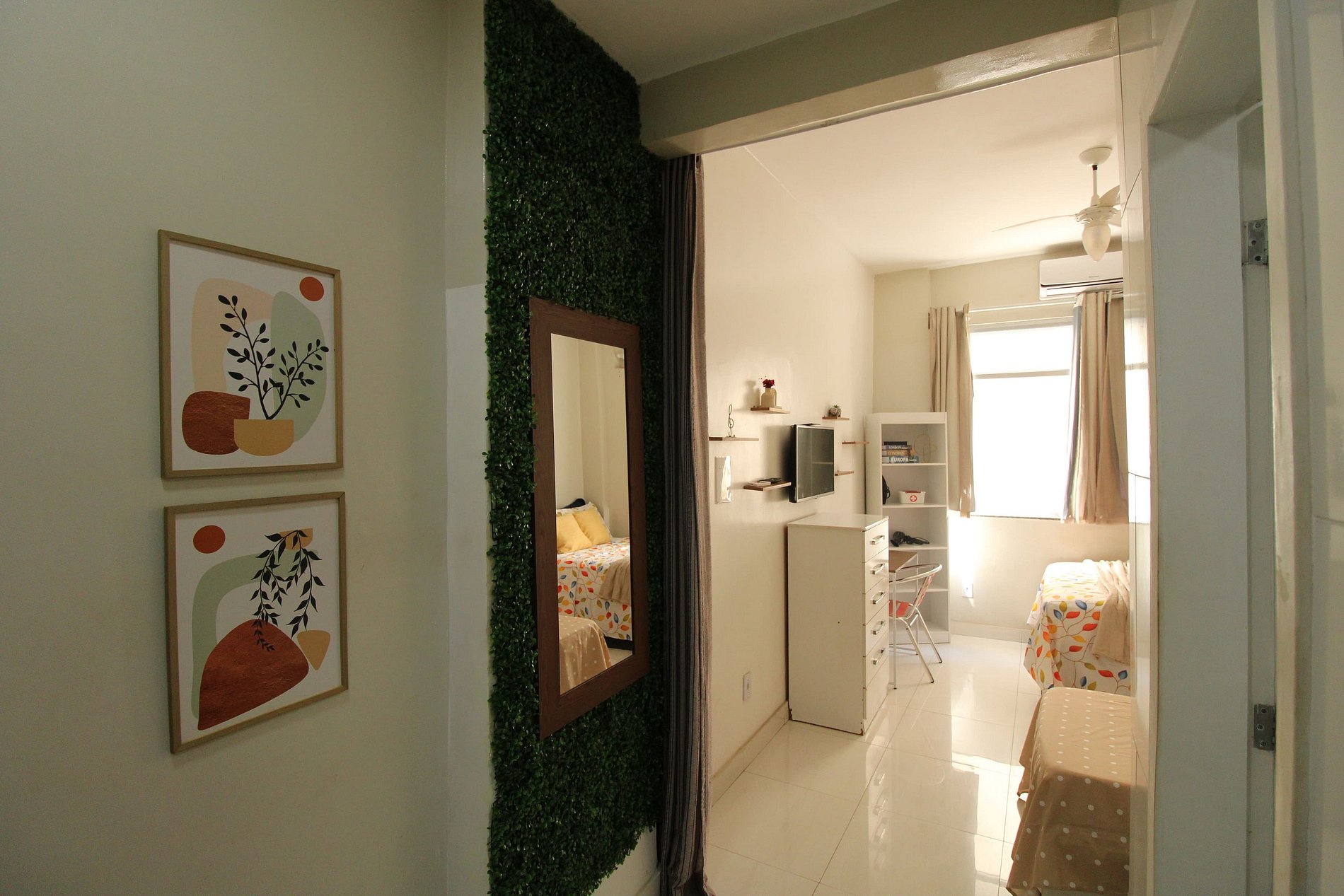 O Estúdio Copa é um apartamento com cerca de 25m², que acomoda até 4 pessoas, localizado à beira mar, com vista para a área interna do prédio.